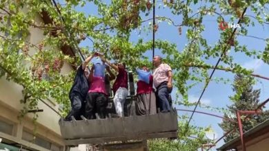 Adana Kozan Belediye Başkanı kepçe üstünde üzüm hasadına başladı