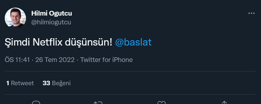Başlat adlı dijital bir platform için 65 milyon dolarlık bütçe ayrıldığı öğrenildi. Egirişim kurucusu Hilmi Öğüt Başlat’ın yakında faaliyete geçeceğini duyurdu. Hilmi Öğüt Twitter hesabından “Şimdi Netflix düşünsün” diyerek platformun sosyal medya hesaplarının da açıldığını duyurdu.