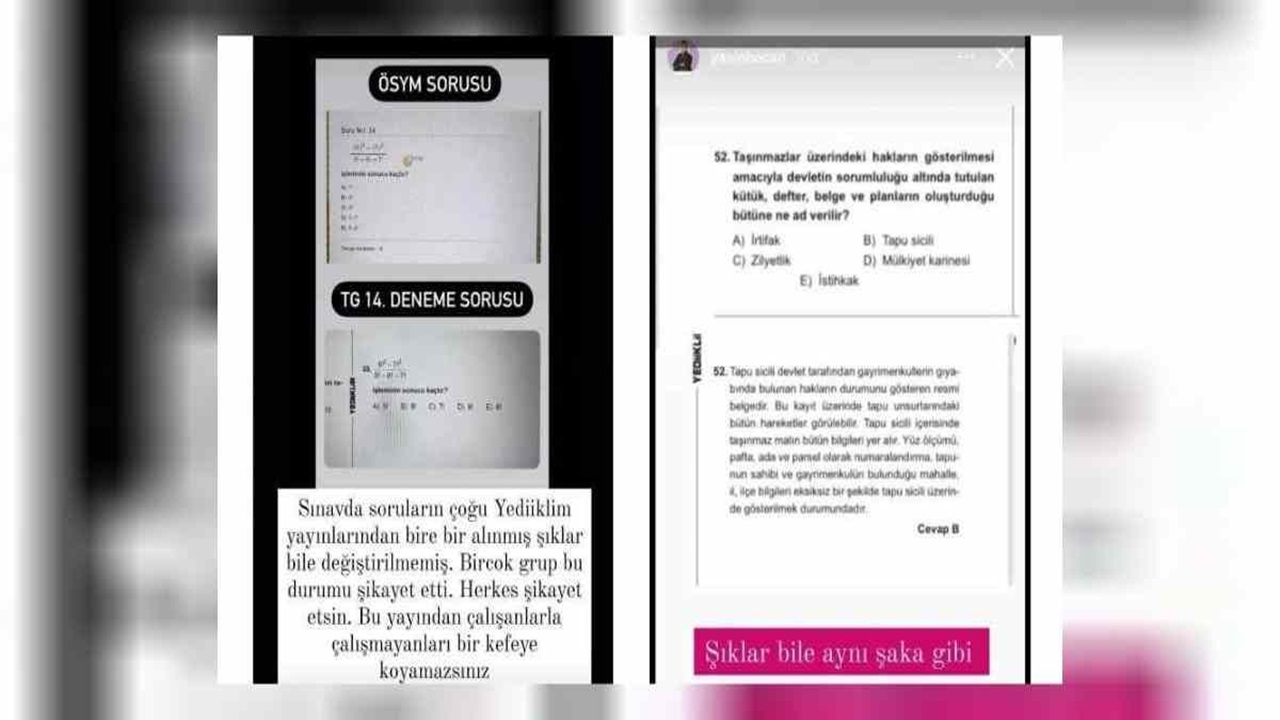 Yediiklim Yayınları’nın soru kitapçıklarında çıkan bazı sorular KPSS sınavında birebir aynen soruldu