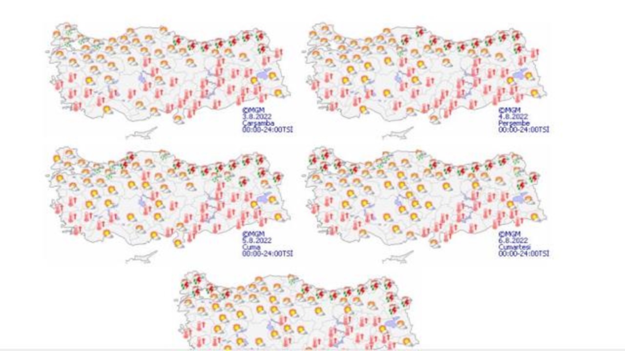 Meteoroloji Genel Müdürlüğü’ne göre hava sıcaklıklarında önemli bir değişiklik yaşanmayacak. Sıcaklıklar, yurdun kuzey kesimlerinde mevsim normalleri civarında, diğer yerlerde ise mevsim normallerinin 3 ila 5 derece üstünde seyredecek.