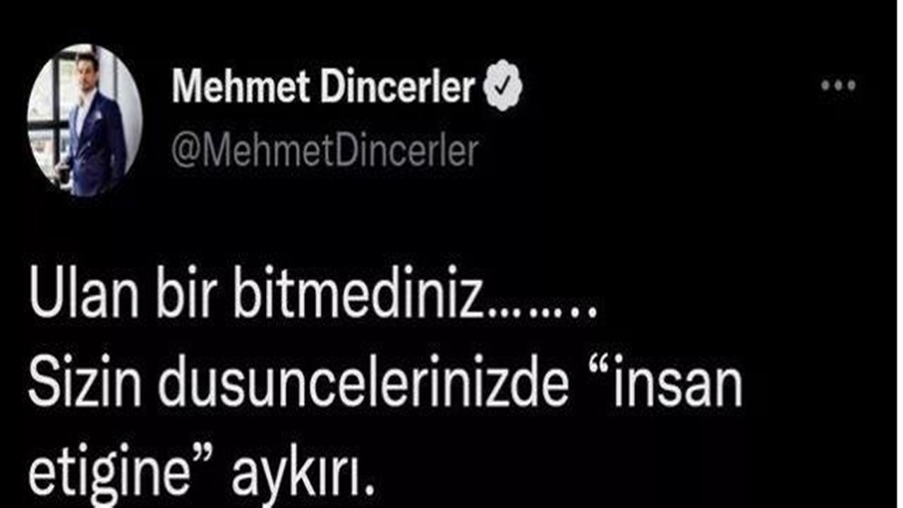 Prof. Dr. Üstün Dökmen’in başörtü yorumu sosyal medyanın gündemine otururken çok sayıda sosyal medya kullanıcısı bu yoruma tepki gösterdi. Dökmen’e bir tepki de ünli popçu Hadise’nin eşi Mehmet Dinçerler’den geldi. Dinçerler, ‘Ulan bir bitmediniz. Sizin düşünceleriniz de insan etiğine aykırı’ ifadelerini kullandı. Bu paylaşımının ardından sosyal medyanın gündemine oturan Mehmet Dinçerler’e çok sayıda sosyal medya kullanıcısı da yorumlarıyla destek verdi.