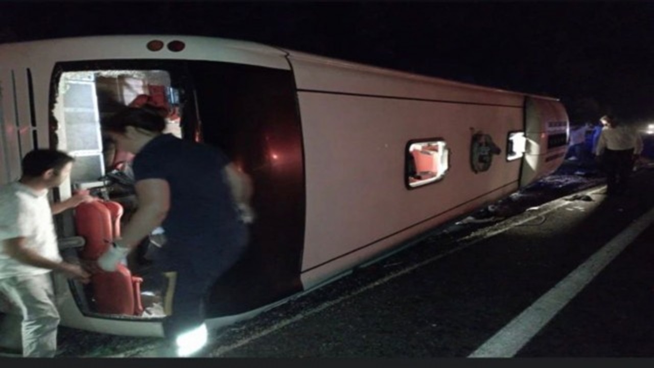 Denizli’de yolcu otobüsü devrildi: Çok sayıda yaralı var