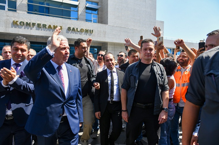 Personelin davul ve zurna eşliğindeki sloganlarıyla karşıladığı Mansur Yavaş, personelin maaşında yüzde 20 ila 68 oranında artış gerçekleştirildiğini belirterek “Ekonomideki bu kötü süreç devam ederse, hiçbir mesai arkadaşımızı ekonomik olarak ezdirmeyecek ve zamana bağlı kalmaksızın durumu tekrar gözden geçireceğiz. Bunu da buradan açıkça ilan ediyoruz” dedi.