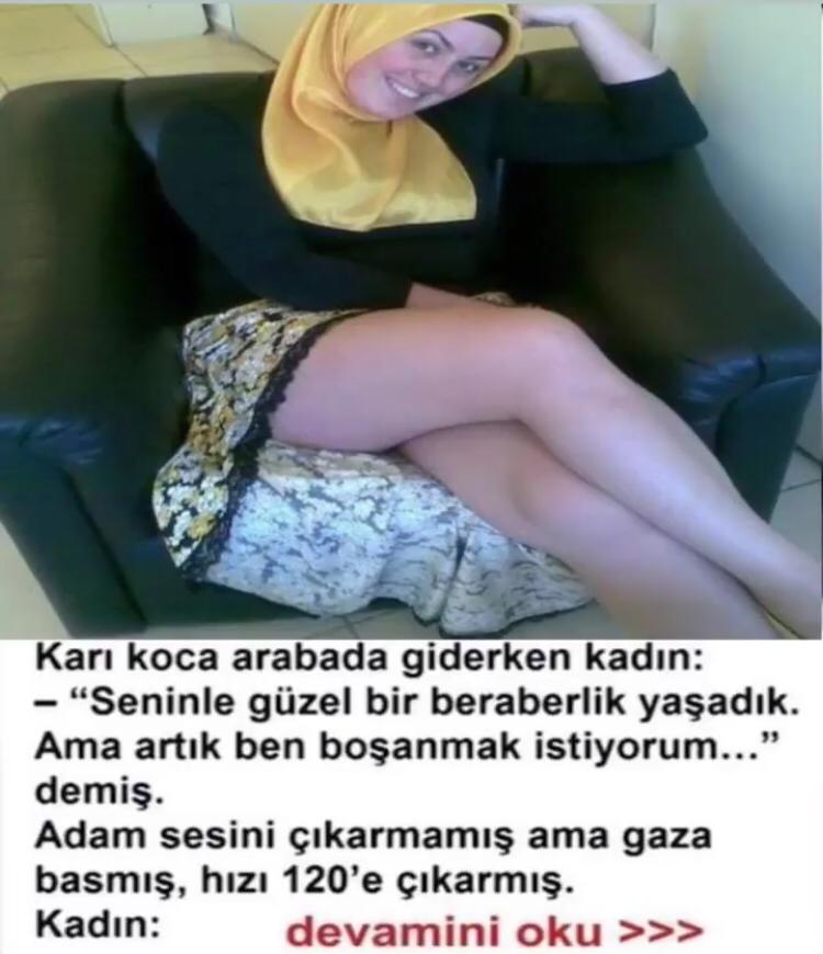 Kadın: – “Neden dersen başkasıyla bir süredir beraberim” demiş. Adam yine ses çıkarmadan hızı 140’a çıkarmış. Kadın devam etmiş: (DEVAMINI OKUMAK İÇİN LÜTFEN FOTOĞRAFIN ÜZERİNE TIKLAYINIZ…)