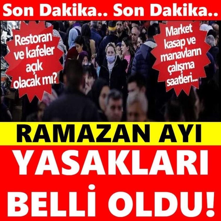 Vakaların artmasıyla kırmızı iller dışına getirilen cumartesi serbestisinden vazgeçilmiş, hafta sonu yasağı yeniden getirilmişti. 13 Nisan’da başlayacak ramazan ayı boyunca da yeni yasaklar uygulanacak.