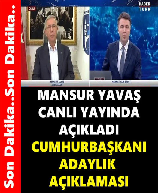 Altılı Masa’nın 2 Mart tarihinde cumhurbaşkanı adayı gündemiyle toplanması öncesi siyaset atmosferi de ısınıyor. Canlı yayında konuşan Yavaş, ‘Adaylık talebi olmadığını ama görev olarak verilirse kabul edebileceğini’ açıkladı. ABB Başkanı Mansur Yavaş, Habertürk canlı yayınında Mehmet Akif Ersoy’un sorularını yanıtladı. CUMHURBAŞKANI ADAYI OLACAK MI? Mansur Yavaş, Cumhurbaşkanı adayı olacak mısınız sorusuna da yanıt verdi. Konunun artık Altılı Masa’nın kararına kaldığını söyleyen Yavaş; “Bu konu 6’lı Masa’nın konusu. 6’lı Masa en uygun kararı verecektir. Daha önce görüşlerimi belirttim. Onun üzerine tekrar bir şeyi söylemeye gerek yok. Ne karar verilirse biz o karara uyacağız. Sayın genel başkanlar, sayın Kılıçdaroğlu, sayın Akşener’in ortak iradesine karşı bir haraket yapmam mümkün değil, böyle bir şeye girmem asla.” İfadelerini kullandı.