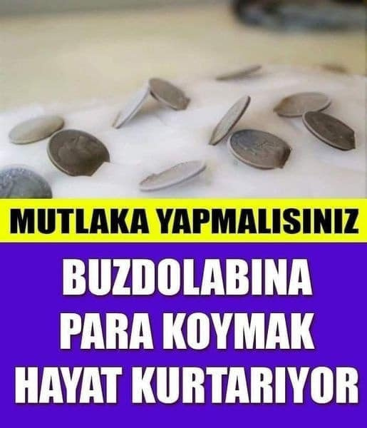 Ne kadar mantıksız gözükse de aslında bu püf nokta Avrupa’da sürekli kullanılıyor ve bu sayede elektriğiniz gidip gitmediğini anlayarak etinizin bozulup bozulmadığını fark edebilirsiniz. Peki, sadece 1 TL ile etin bozulup bozulmadığını nasıl anlarsınız? İAvrupa ülkelerinde sıklıkla kullanılan bu yöntemde önce buzluğa bir kap su koyun ve dondurun. Sonra üzerine 1 TL koyarak buzluğunuzun kapağını kapatın. BUZUN ÜZRİNDE HALA DURUYORSA GÜVENLİ DEMEKTİR Tatilden veya farklı bir şehirden döndüğünüzde 1 TL buzun üzerinde hala aynı şekilde duruyorsa dolaptaki gıdaların hepsini güvenle tüketebilirsiniz. 1 TL BUZUN ALTINDA KALIRSA TÜKETMEYİN Eğer 1 TL buzun altına düştüyse o gıdaları kesinlikle tüketmeyin. Çünkü buzluğunuz muhtelemen elektrik kesintisine uğramış ve içerisindeki buzlar erimiş olabilir. Yani buzdolabı uzun süre durunca ürünler çözülmüş ve yeniden çalışınca tekrar donmuş demektir. Bu süre içerisinde buzlukta bulunan et, tavuk vb. ürünlerin yüzde 90’ı bozulacaktır. Bu durum gıda zehirlenmesine neden olabilir ve sağlınızı riske atabilir. Buzdolabınızın elektrik kesintisine uğrayıp uğramadığını 1 TL yöntemi ile kolayca anlayabilirsiniz.