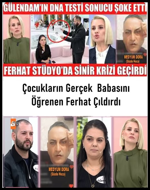 Son yayınlanan videolarda ve paylaşımlarda Gülendam ile Ferhat çiftinin genetik test sonucu ekrana taşındı. Programda yapılan DNA testi sonucuna göre çocuklarla ilgili şüpheler netlik kazandığı iddia edildi. DNA testi sonuçlarına göre çocukların biyolojik olarak iddia edilen babaya ait olduğu ortaya çıktı ya da en azından şüpheleri çürüten sonuçlar açıklandı. Bu durum Ferhat’ı stüdyoda duygusal tepkiler vermeye yöneltti. Yalnız medyum olduğunu söyleyen bir ismin çocuklardan birinin babası hakkında yaptığı açıklama gündem oldu, Ferhat buna kandığı için eşi hakkında böyle bir şüpheye düştüğünü söyledi Eşine ne olur benim yüzüme tukur dedi. Bunu yapmazsan boşanmam dedi. Esra ben sana yayın dışında…. diyerek tepkisini gösterdi. Biyolojik baba 2 çocuğunda Fikret çıktı. Gülendam ise eşini affetmedi. aşağıdaki videoda var açıklaması Kısacası: • Gülendam ile ilgili yapılan DNA testinde beklenenin aksine çocukların başka bir babadan olmadığı, testin çocuğun iddia edilen baba ile biyolojik bağını gösterdiği yönünde sonuçlar ortaya çıktı..