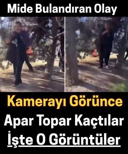 İzmir’in Konak ilçesinde, metro çıkışına yakın ağaçlık bir alanda üç kişinin uygunsuz hareketlerde bulunduğu iddia edildi. Olay, çevrede bulunan bir vatandaşın cep telefonu kamerasıyla kaydedildi. GÖRÜNTÜLENDİKLERİNİ ANLAYINCA HEMEN KAÇTILAR Görüntülendiklerini fark eden şahıslar, hemen toparlanarak olay yerinden uzaklaşmaya çalıştı. Vatandaşın “Ne yapıyorsunuz burada?” sorusuna yanıt vermeyen şahıslar, apar topar bölgeden ayrıldı.