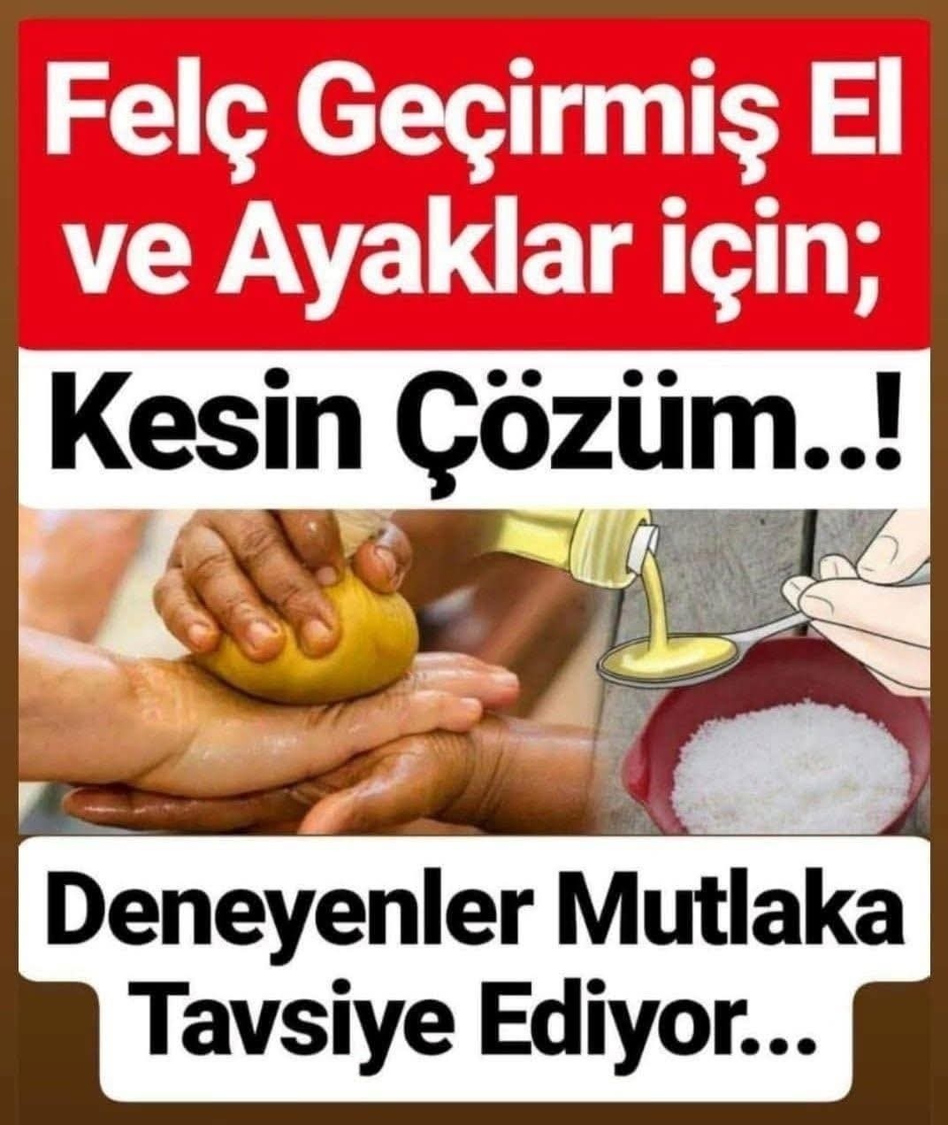Bu faydalı doğal felç kürü kaya tuzu ve zeytinyağı ile hazırlanmaktadır. Hayati öneme sahip olan bu makalemizi okuduktan sonra çevrenizdeki bu tür hastalığa sahip kimseleri bilgilendirmek için mutlaka paylaşın. Böylelikle yakınlarınızın iyileşme süresine katkıda bulunmuş olursunuz. Felç Kürü Nasıl Yapılır? Malzemeler: 1 litre saf zeytinyağı ½ kg kaya tuzu Hazırlanışı: Zeytinyağı ve kaya tuzunu bir şişe içerisinde karıştırın. 2,5 litrelik meşrubat şişelerini de kullanabilirsiniz. Karışımı iyice çalkaladıktan sonra şişeyi güneş alan bir yere koyun. Elinizin altında bir yere koyarsanız gün içerisinde fırsat buldukça çalkalayarak tekrar güneşe koymanız kolay olacaktır. Kaya tuzu güneş sıcaklığı ve sürekli çalkalanmanın etkisi ile zeytinyağı içerisinde eriyecek ve şişenin dibinde tortu haline gelecektir. Örneğin ortalama 30 derece bir sıcaklıkta 1 hafta kadar güneşlenirse yeterli olacaktır. Uygulanışı: Tuz eriyerek tortu haline geldikten sonra hasta olan kişi güneşe uzanır, hazırlanan bu karışım güneş kremi sürer gibi hastalıklı bölgelere sürülür. Karışımı sürmeden önce şişeyi çalkalamayı unutmayınız. Bu uygulamayı yaptıktan kısa bir süre sonra felçli bölgede hareketlenme olacaktır. Elektrik çarpıyormuş gibi ciddi anlamda çok garip hareketlere şahit olacaksınız. Yağı sürdükten sonra ortalama yarım saat güneşlenip, ardından ılık bir suyla masaj yaparak durulayın. Bu uygulamayı haftada 3 gün yapabilirsiniz. Mutlaka deneyin, mükemmel sonuçlar elde edeceksiniz. Uzmanlar Tavsiye Ediyor! Şifa kaynağı olan kaya tuzunun kullanımının teşvik edilmesi gerektiğini söyleyen uzmanlar, kaya tuzunun hangi hastalıklara iyi geldiğini açıkladı. Trabzon Kanuni Eğitim Araştırma Hastanesi Acil Tıp Uzmanı Dr. Selim Yurtsever, şifa kaynağı olan kaya tuzunun kullanımının teşvik edilmesi gerektiğini söyledi. Kaya tuzunda insan vücudundaki gibi 84 farklı element bulunduğunu, bunun vücudun ihtiyacı olan elementlerin kaya tuzundan karşılanabileceği anlamına geldiğini vurgulayan Yurtsever, “Kaya tuzu astım, bronşit gibi alt solunum yolları hastalıklarına iyi geliyor. Ayrıca cildin güzelleştirilmesi, yüzlerde bulunan aknelerin giderilmesi, antidepresan özelliğinin yanında stres alıcı yanı da var. Evde tuz kristalini eriterek içerisinde 20 dakika kadar durulursa bacaklarda ve kollardaki ağrıların gitmesinin yanında ferahlamayı da sağlar. Tansiyon hastalarında ekseriyetle tuz kısıtlanır. Fakat bazı hastaların vücudunda sodyum seviyesi düşükse tuz kısıtlandığında farklı sorunlar olabilir. Bu hastaların özellikle kaya tuzu tüketmelerini tavsiye ediyorum.” dedi.