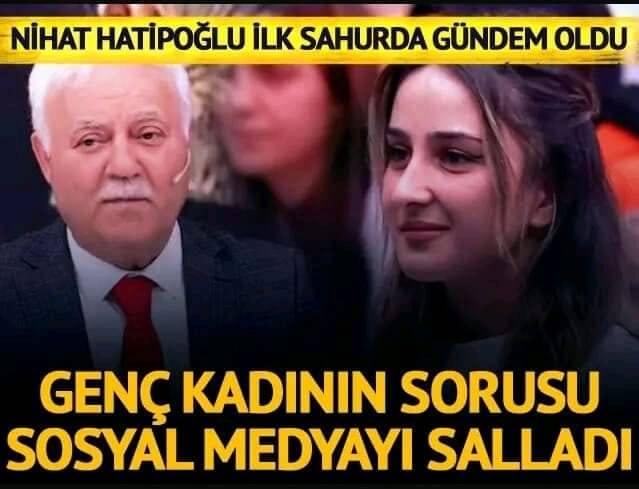 Nihat Hatipoğlu’na ilk sahurda gelen soru sosyal medyada gündem oldu! “Umut verip…” Ramazan ayı boyunca milyonları ekran başına kilitleyen Nihat Hatipoğlu ilk sahur programını yaptı. ATV’de her yıl ekrana gelen Prof. Dr. Nihat Hatipoğlu’na her yıl gelen sorular gündem oluyor. Bu yıl ekranda olan Nihat Hatipoğlu’na yine çeşitli sorular yağdı. Genç bir kadın ünlü ilahiyatçıya sahurda “Sevip de sevilmemenin günahı nedir? Umut verip de yarı yolda bırakmanın günahı nedir” diye sorunca sosyal medyada gündem oldu. “KAPRUZ DEĞİL HOCAM…” Nihat Hatipoğlu bu soruya “Kötü niyetle başlanmışsa umut verdiyse günahtır. Ama iyi niyetlidir bakar karakterde farklılıklar vardır senin yolun sana benimki bana diyorsa problem yok. İstismar etmek niyetiyle ise günahtır. Öyle ise uzak dur, gerçi ‘karpuz değil hocam içini göremiyorum’ diyeceksin… Ama bence bir görüşmede bile birkaç soruda insanların karakterini anlamaktazorlanmazsınız” yanıtını verdi. Bir günde harcadığı para şoke etti! “Çok çalışıyorum…” Genç kadının sorusu sosyal medyada defalarca kez paylaşıldı ve “Aşkolog Nihat Hatioğlu”, “Konuş hocam kızın içi yanmış”, “En çok merak ettiğim soru gelmiş” yorumları yapıldı. kaynak:mynet