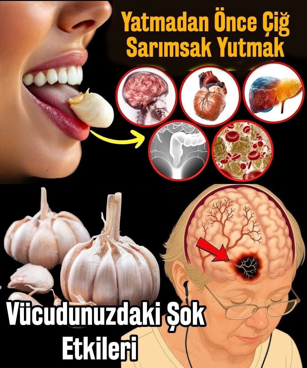 Geceleri Sarımsak Yemenin Sağlığınıza Faydaları Aşağıda gece sarımsak yemenin farklı faydaları yer almaktadır. Hadi başlayalım! 1. Bağışıklığı Güçlendirir Sarımsak, antimikrobiyal özelliklere sahip güçlü bir bileşik olan allisin açısından zengindir. Allisin, sizi hasta edebilecek zararlı bakteri ve virüslerle savaşan doğal bir savunma sistemi gibi davranır. Bu, bağışıklık sisteminizi güçlendirerek sağlıklı kalmanıza ve soğuk algınlığı ve grip gibi enfeksiyonlardan korunmanıza yardımcı olur. 2. Kalp Sağlığını İyileştirir Kalp hastalıkları büyük bir endişe kaynağı olsa da sarımsak güçlü bir yardımcı olabilir. Araştırmalar, sarımsağın kan basıncını düşürmeye yardımcı olabileceğini ve bu sayede kalbinizdeki yükü azaltabileceğini gösteriyor. Ayrıca, tıkalı atardamarlara ve kalp sorunlarına yol açan kötü kolesterol (LDL kolesterol) ve trigliserit seviyelerini düşürmeye de yardımcı olur. Bu da kalp krizi ve felç riskini azaltabilir.