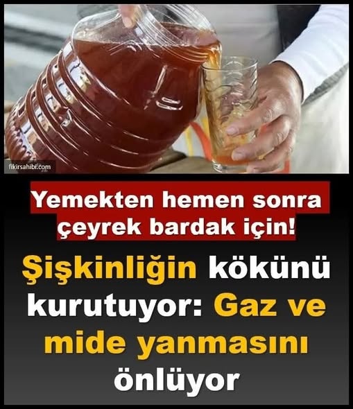 ŞİŞKİNLİĞİ YOK EDİYOR: Yemeklerden sonra çeyrek bardak içeceğiniz bir doğal karışım, sindirim sisteminizi rahatlatmanın en etkili yollarından biridir. Özellikle mide yanmasını engellemek ve gaz oluşumunu azaltmak için bazı bitkisel içecekler oldukça faydalıdır. Bu içecekler, midenin asidik dengesini düzenler, bağırsak hareketlerini hızlandırır ve şişkinlik hissini ortadan kaldırır. Doğal bileşenlerle yapılan bir içecek, kimyasal ilaçlardan farklı olarak, vücuda zarar vermeden sindirimi destekler. ZENCEFİL: Güçlü bir sindirim destekçisi olan zencefil, yemeklerden sonra şişkinliği engellemek için etkili bir bileşendir. Zencefil, mideyi rahatlatır ve gaz birikimini engelleyerek sindirimi hızlandırır. Ayrıca, mide bulantısı ve asidik reflü gibi problemlerin önlenmesine yardımcı olur. Çeyrek bardak taze zencefil suyu veya zencefil çayı içmek, yemek sonrası rahatlamanızı sağlar ve sindirim sürecini düzenler. NANE: Bir diğer önemli bileşen ise nane. Nane, mideyi soğutur ve kasılmaları azaltarak gazın atılmasına yardımcı olur. Aynı zamanda mide asidini dengeleyerek yanma hissini engeller. Nane çayı, sindirim sistemini yatıştırarak yemek sonrası oluşan rahatsızlıkları en aza indirir. Çeyrek bardak nane çayı içmek, mide ve bağırsaklardaki rahatlamayı hızlandırır. LİMON: Limon, sindirimi hızlandıran en etkili doğal asidik bileşiklerden biridir. Yarım limonun suyunu suya ekleyerek içmek, mideyi uyarır ve sindirimi kolaylaştırır. ELMA SİRKESİ: Elma sirkesi, mide asidini dengeleyerek sindirimi kolaylaştırır ve gaz oluşumunu engeller. Ayrıca, mide yanmasını önleyerek rahatlamanızı sağlar. Özellikle elma sirkesi, içerdiği asetik asit sayesinde mide asidinin dengelenmesine yardımcı olabilir. 2016 yılında Journal of Functional Foods dergisinde yayımlanan bir çalışmada, elma sirkesinin yemek sonrası mide içeriği pH’ını hafifçe düşürerek mide boşalmasını yavaşlattığı ve bu yolla mide yanması (reflü) riskini azaltabileceği belirtilmiştir. Herhangi bir mide problemi yaşamadan yemek sonrası bir bardak suya birkaç damla elma sirkesi ekleyerek içebilirsiniz. Bu basit çözüm, sindirim sisteminizin verimli çalışmasına katkı sağlar Kaynak: Yemekten Hemen Sonra İçin
